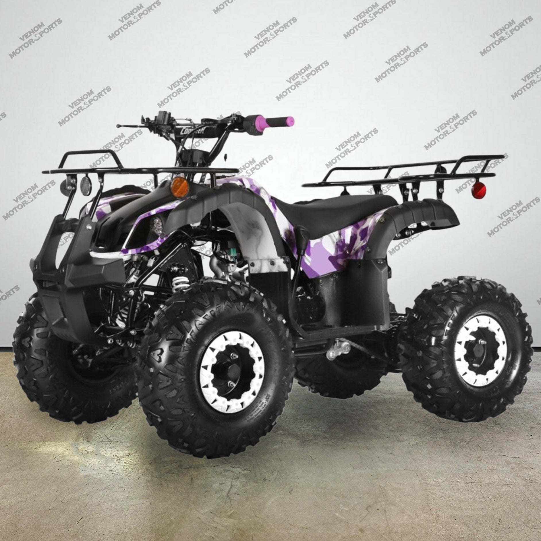 Explore the great outdoors with the Venom Kodiak, a fully automatic and reverse 125cc ATV designed for youth. With its powerful 125cc engine, this utility ATV provides the perfect balance of fun and practicality for young riders. Tackle any terrain with ease and experience the thrill of off-roading like never before!